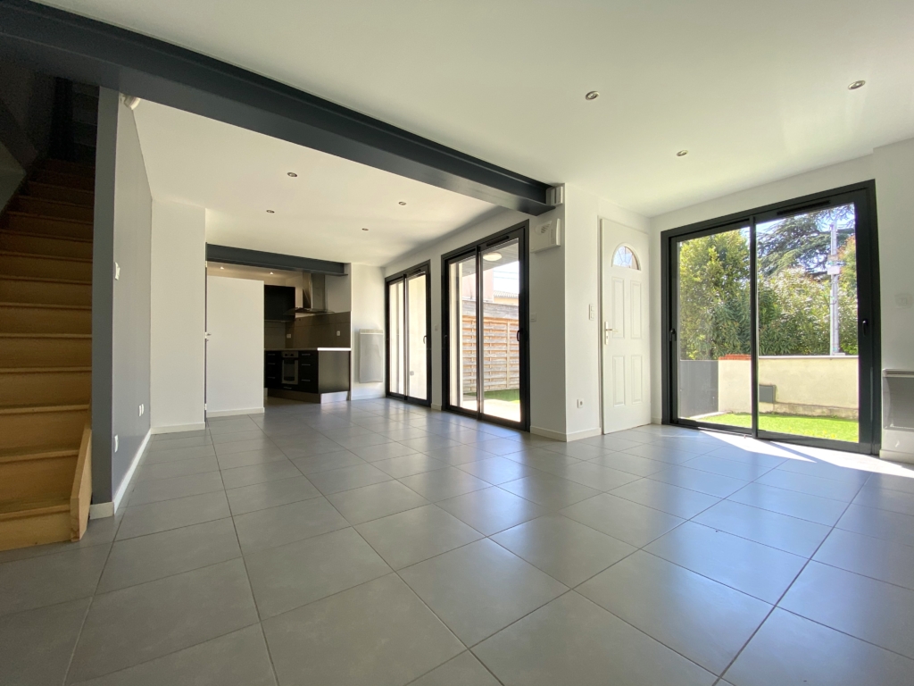 Au rez-de-chaussée, séjour de 33m2 baigné de lumière avec ses trois grandes baies vitrées donnant sur un extérieur de 30m2. Cuisine ouverte et équipée. Buanderie et WC. A l'étage, trois chambres lumineuses avec rangements. Une salle de bain avec un second WC.