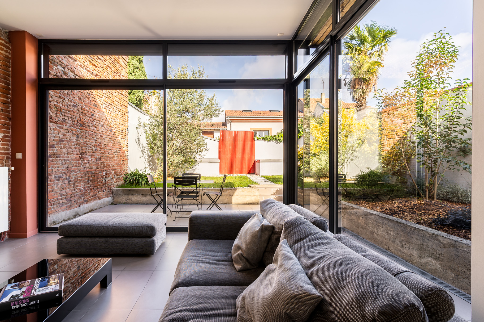 Murs en brique apparente, beaux volumes, lumière traversante et matériaux nobles sont de mise.