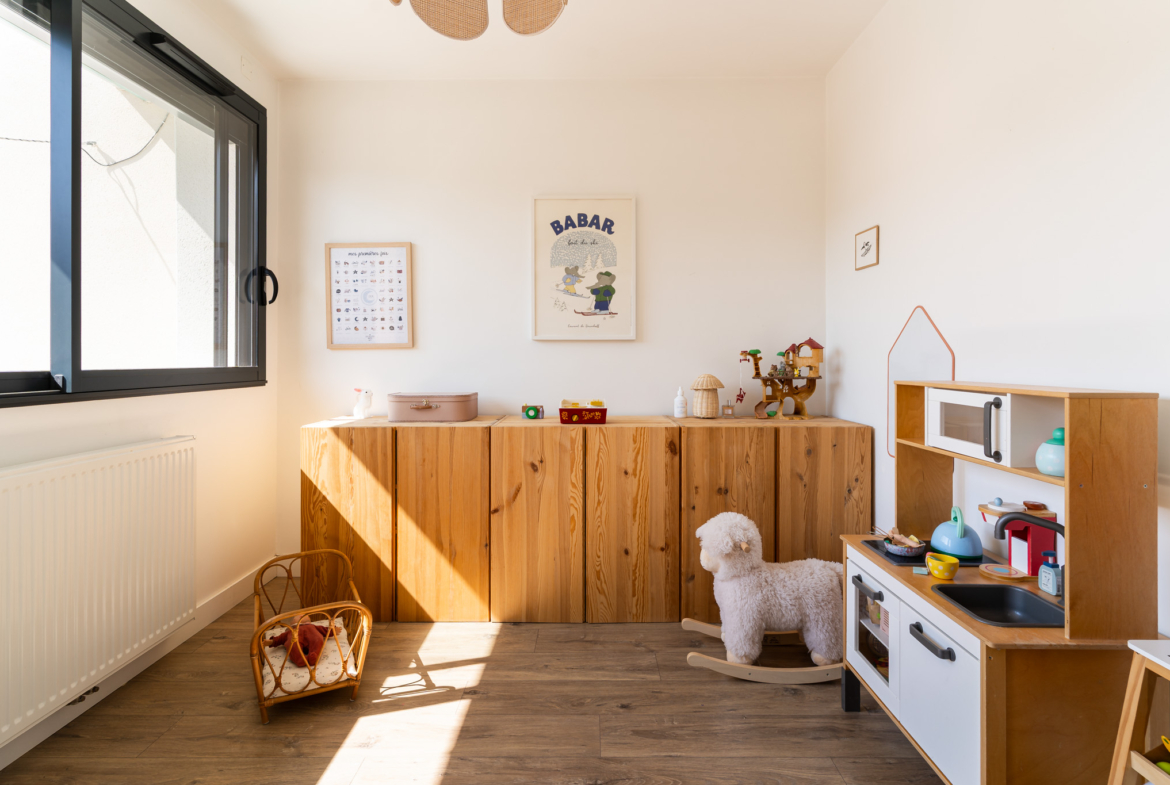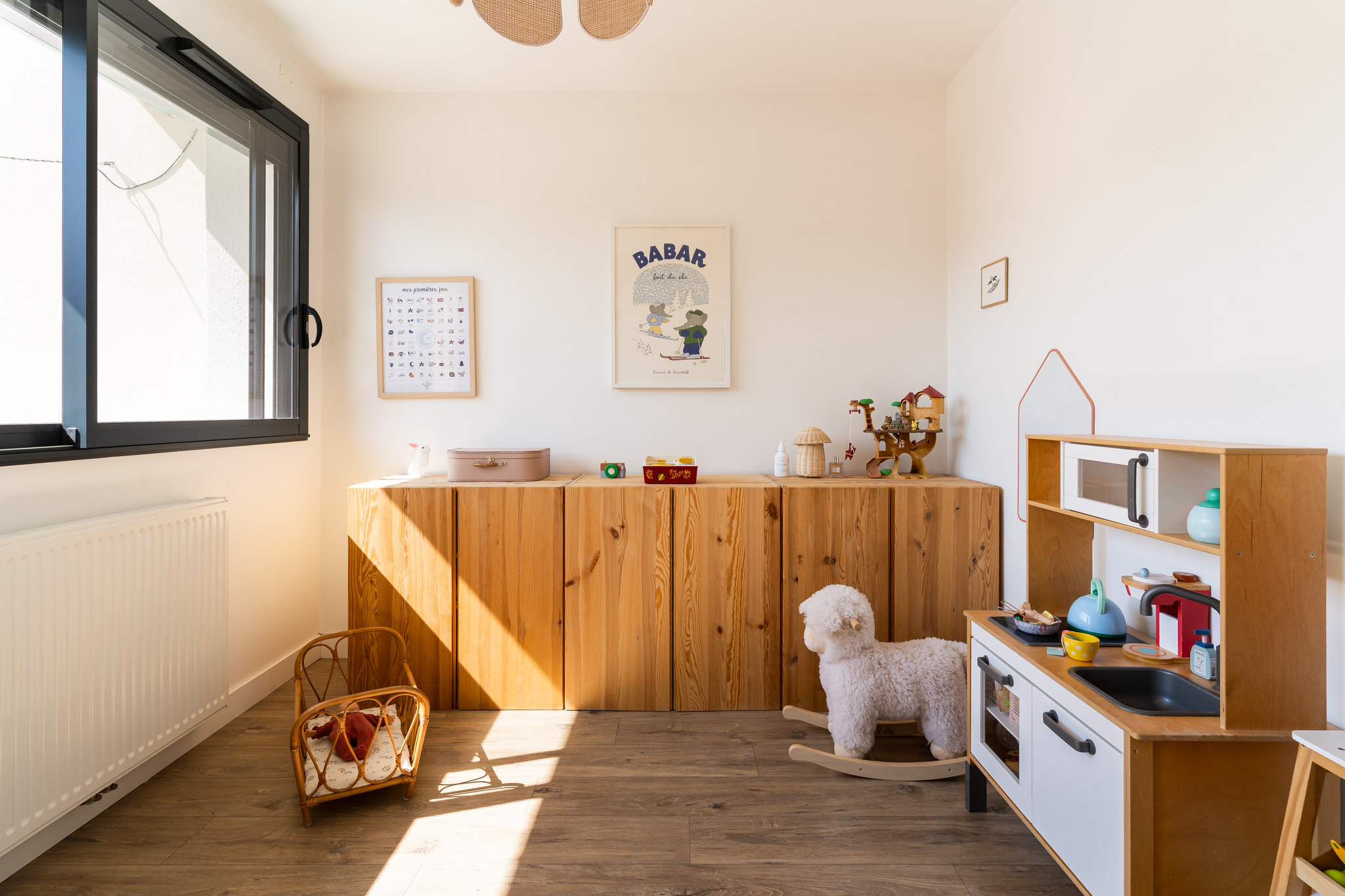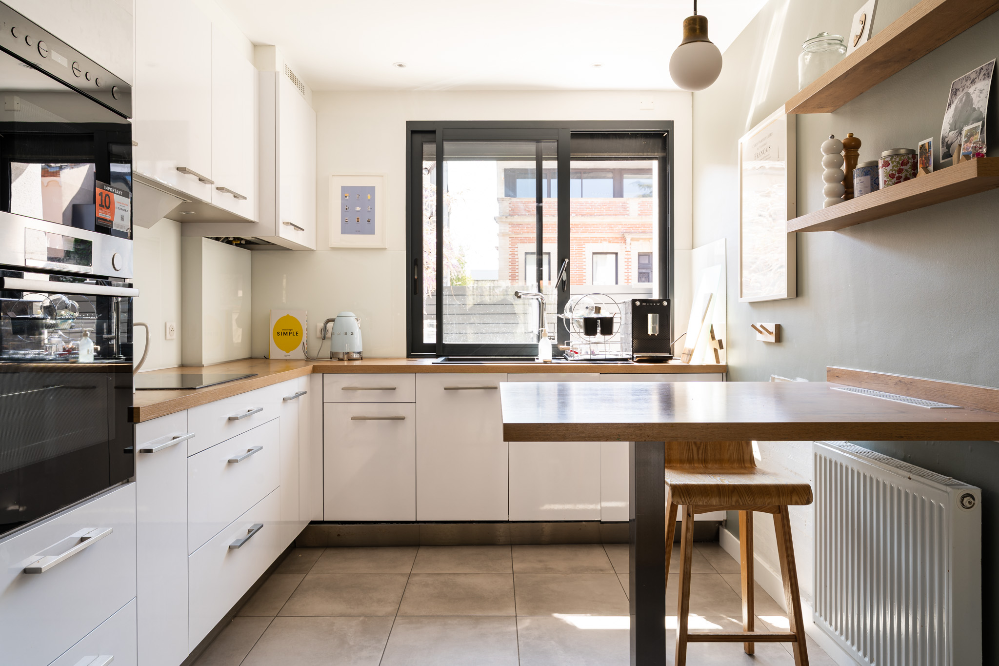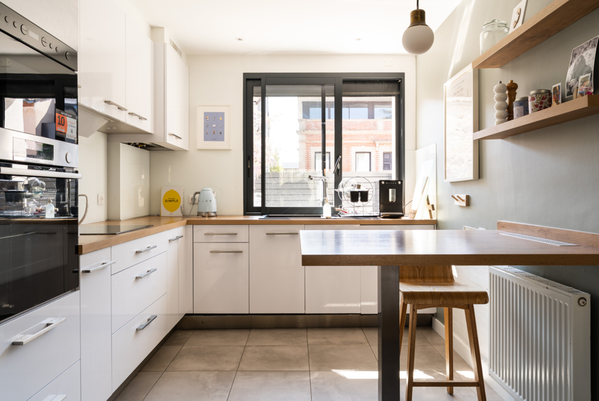 La cuisine, parfaitement intégrée, se veut pratique et agréable.
