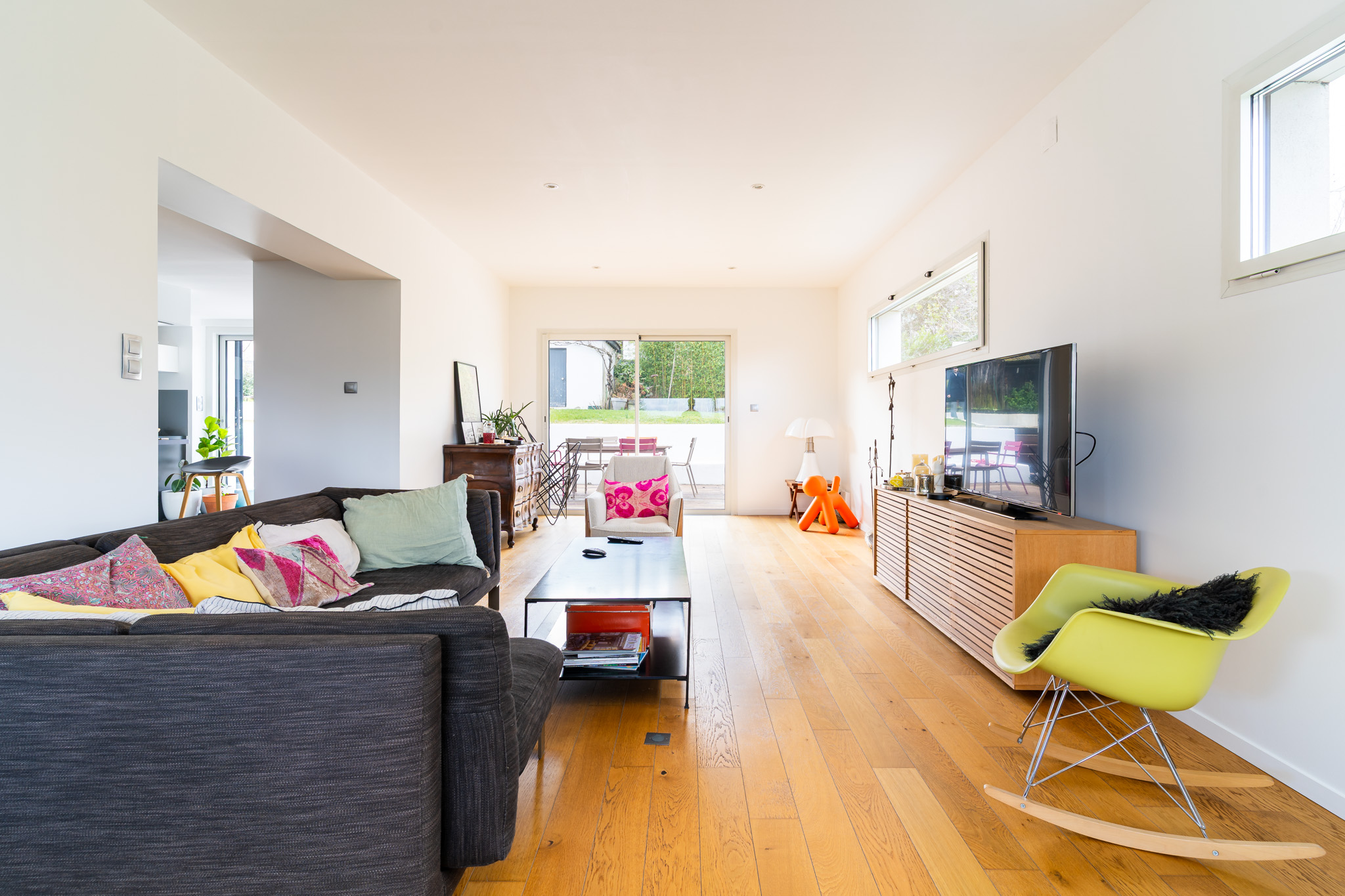 La pièce de vie est généreuse avec plus de 80 m2, elle béneficie d'une triple exposition et s'ouvre sur une terrasse éxposée Sud-Est.