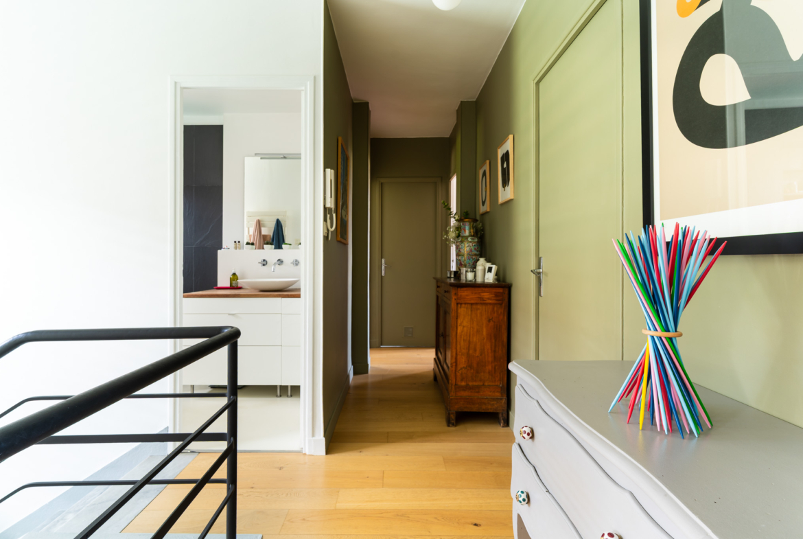L'étage dispose de 5 chambres, dont une grande, et de deux salles de bains.