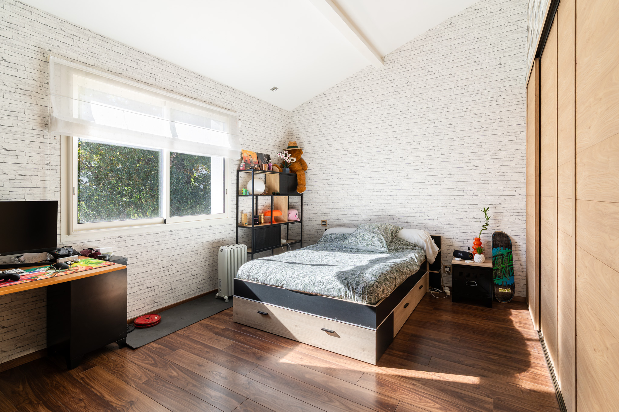 L'étage, desservi par ascenseur, accueille les chambres et trois salles de bains.
