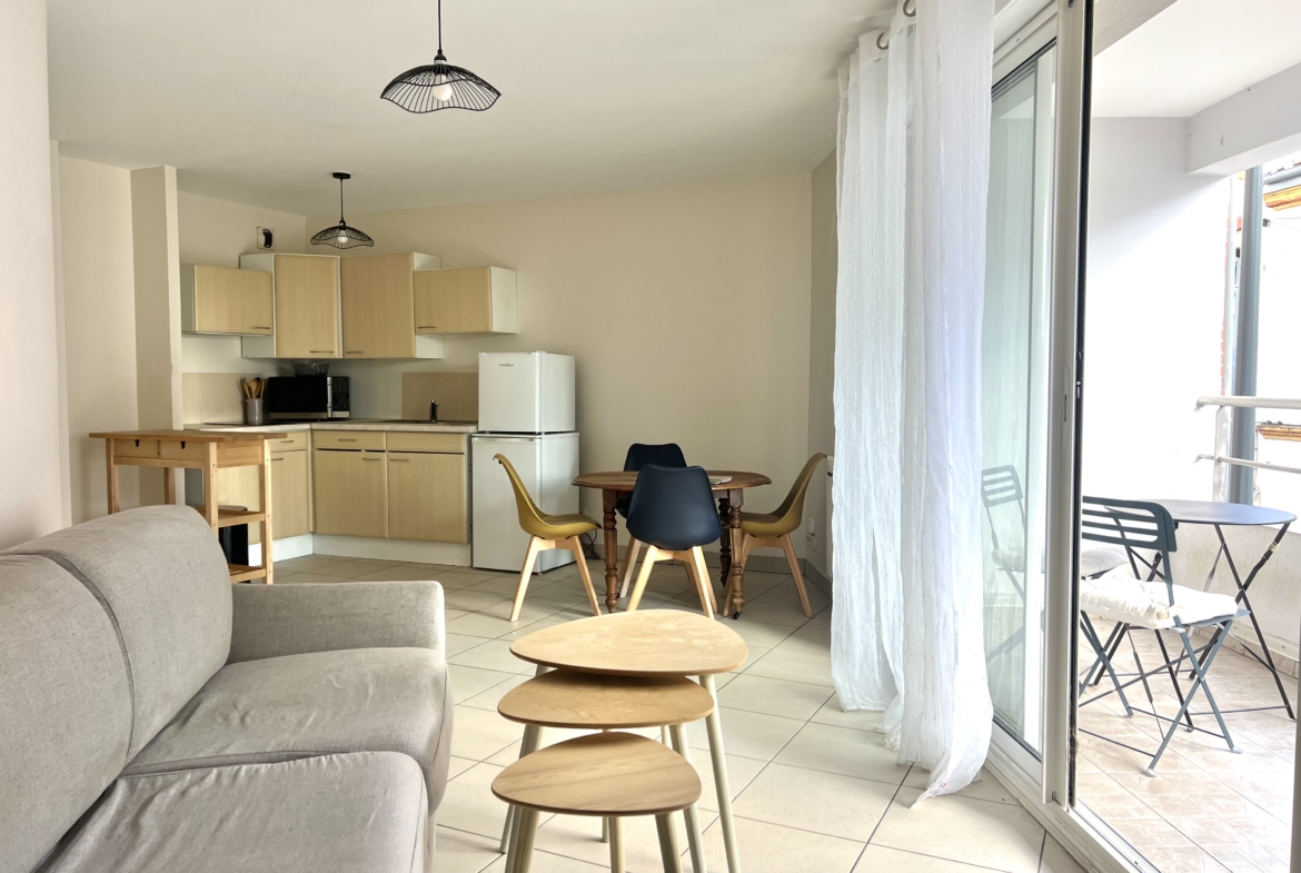 Au coeur de la Côte Pavée, au pied des commerces et de toutes commodités, joli T2 de 42m2 meublé, au premier étage d'une petite copropriété de 2007.