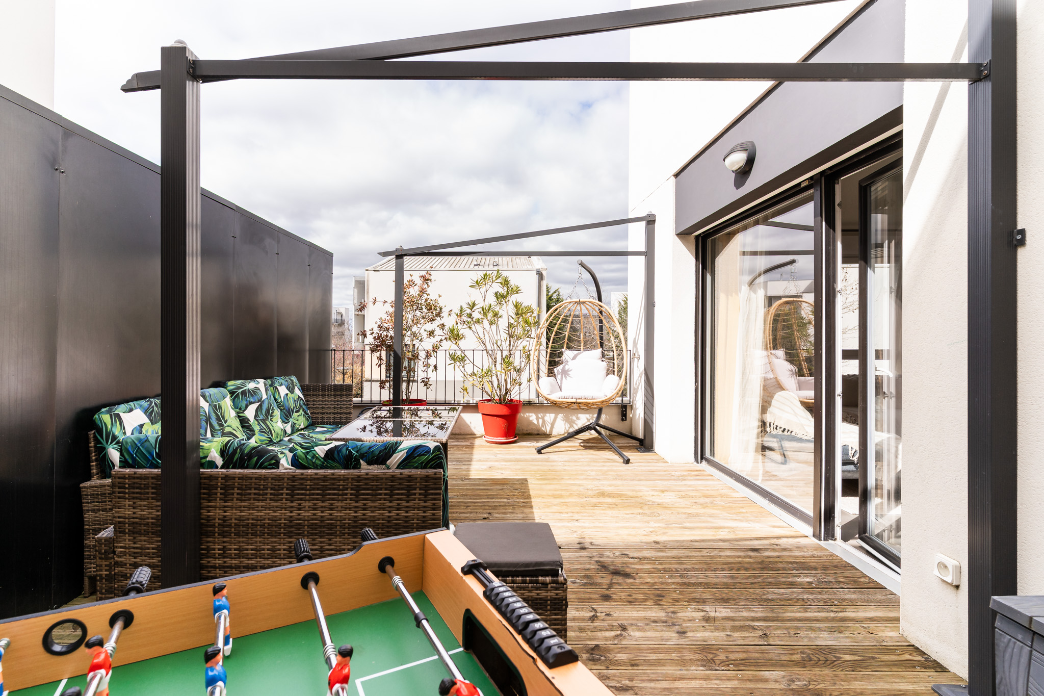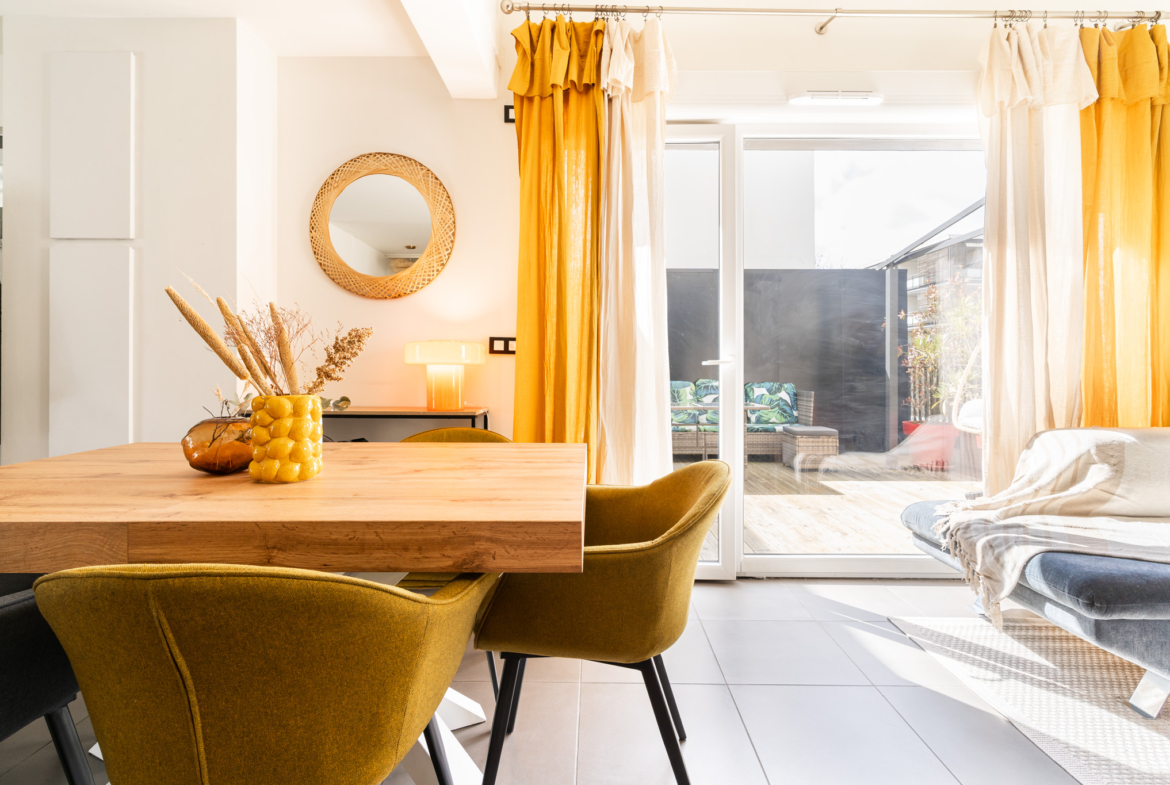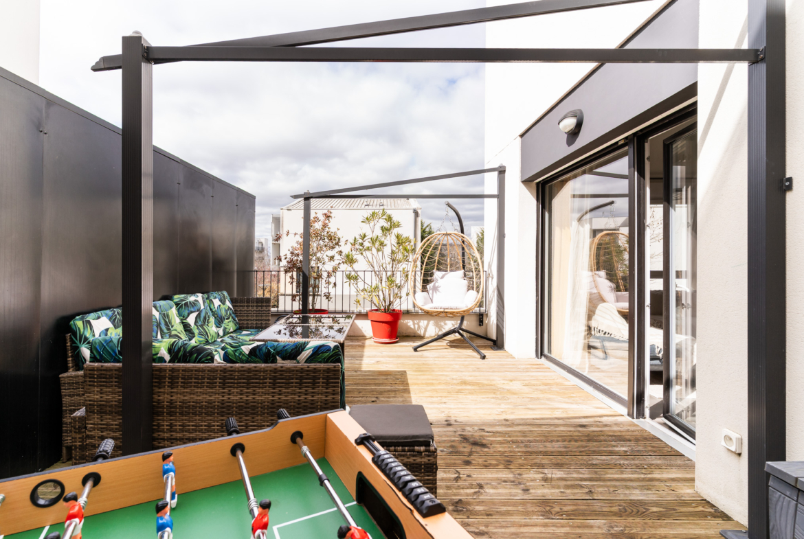 Construction contemporaine pour ce confortable T5 duplex traversant, situé en dernier étage avec terrasse ensoleillée et sans vis à vis.