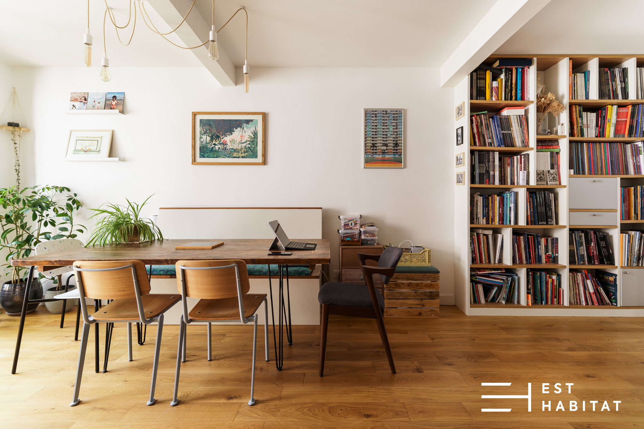 La pièce de vie est traversante et s’ouvre sur un patio de 30 m2 situé au calme absolu.